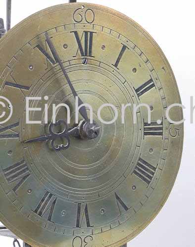 Wanduhr mit Messingziffering oder Zinnzifferring, Messingreif,